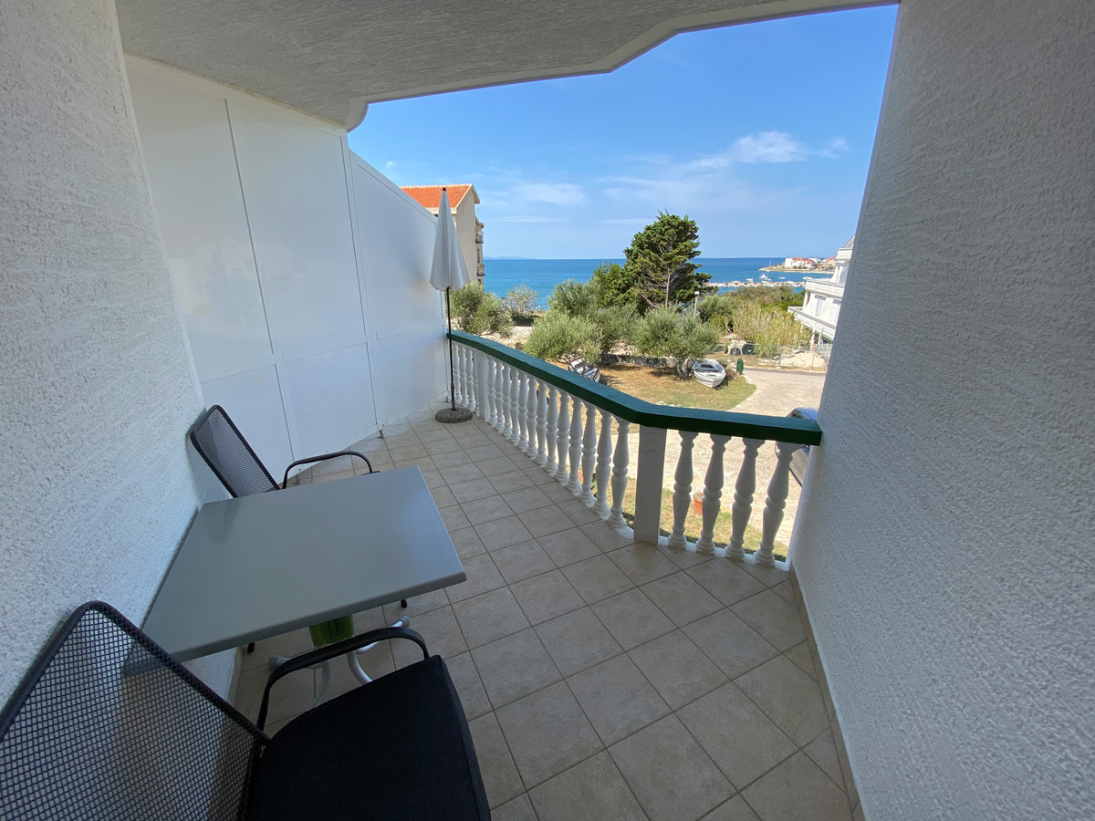 - výhled na moře - větší terasa se stolem a židlemi